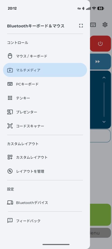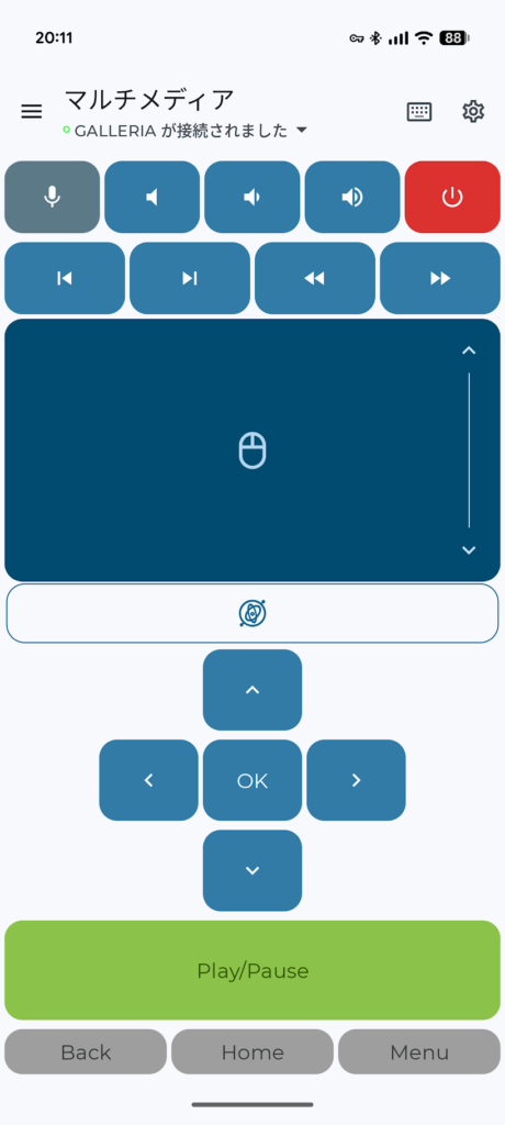 • Air Mouse(空中マウス): スマホのジャイロセンサーを使い、スマホを空中で動かすだけでカーソルを操作できるモードです。