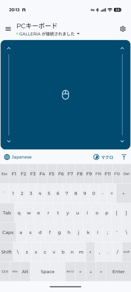 • フルPCキーボード: 数字キーやファンクションキーを含む、標準的なキーボードレイアウトがスマホに出現します。