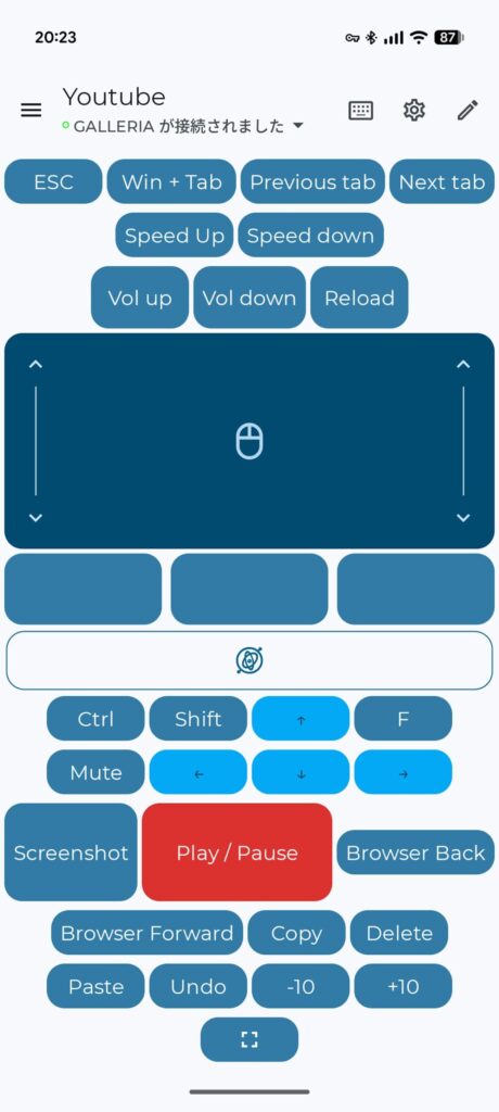 Youtubeなどメディア利用時に主に使用するボタンを集めたレイアウトになっています。