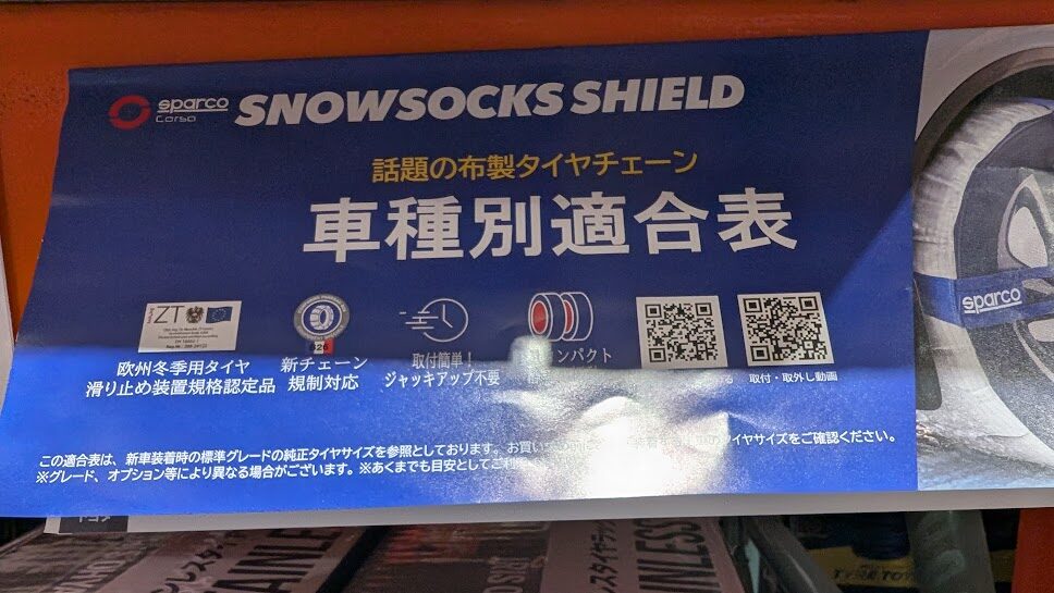 コストコで販売されている布製タイヤチェーン:SPARCO スノーソックス “SHIELD”の紹介【2025~2026年版】
