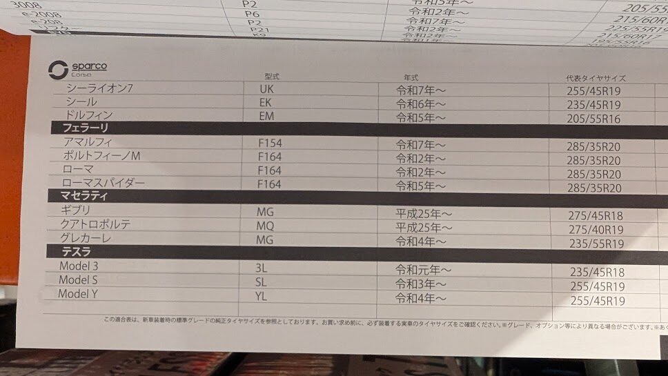 - Sparco “SHIELD” 製品ページ&適合表:特徴・速度目安・サイズコード(例:325R68)を確認。コストコオンラインでチェック