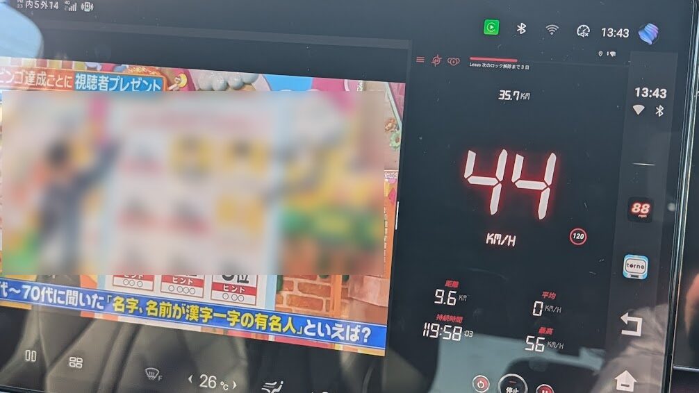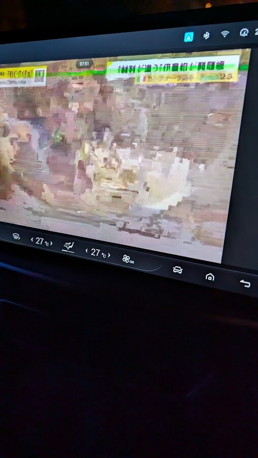 駐車中にスマホのトルネの映像をマルチタッチスクリーンにミラーリングして地上波テレビを視聴することができましたが…結果は以下の通り。