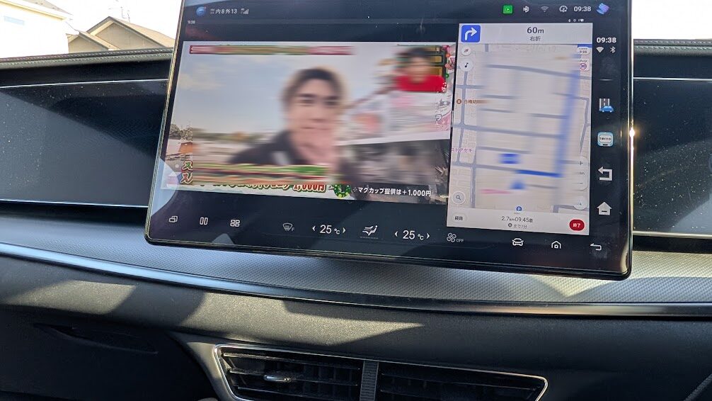 - 左側:torne® mobile(テレビ) という表示が可能です。 Carlinkitではこの分割設定が保存できなかったりしますが、Ottocastはレイアウト保持も優秀。ドライバーは地図、助手席はテレビ。誰も我慢しない空間が完成しました。