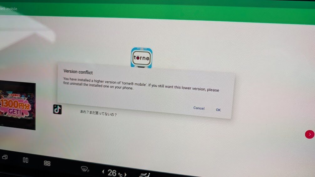 後述する方法でインストールを試すもアプリがすぐに落ちてしまったり、セキュリティエラーで結局視聴できなかったりとCarlinkitは制限が強いらしくてtorne® mobileアプリでのテレビを観ることが困難でした。