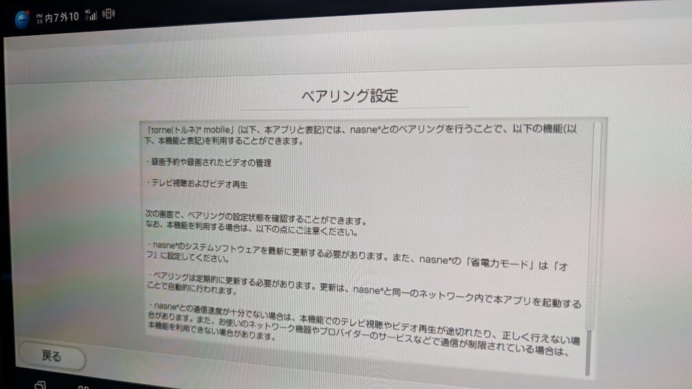 仕方がないのでスマホに予めインストールしてあるtorne® mobileアプリを利用してミラーリングしてみたらどうなるか試してみました。