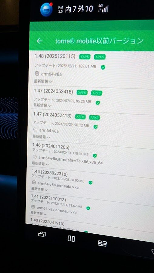 私は「あえて少し古いバージョン」のAPKを探してインストールすることで、安定動作に成功しました。(ここでは1.46(2024011205)を選んでインストールしました)