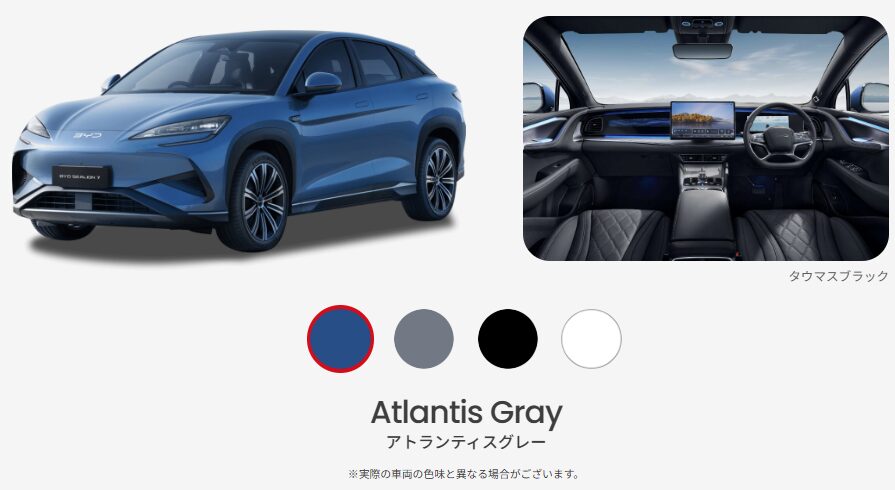 最初のインパクトで、このSUVカッコいい!と思って公式サイトを見てからBYDのディーラーに出向いてみたら、実際のカラーがアトランティスグレーというグレーに近いカラーだったと知ってガッカリしがちです。