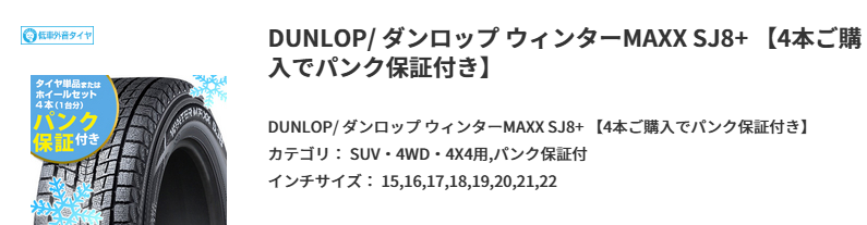 • ③ 雪道も高速も走る(バランス重視)なら:【ダンロップ WINTER MAXX SJ8+】